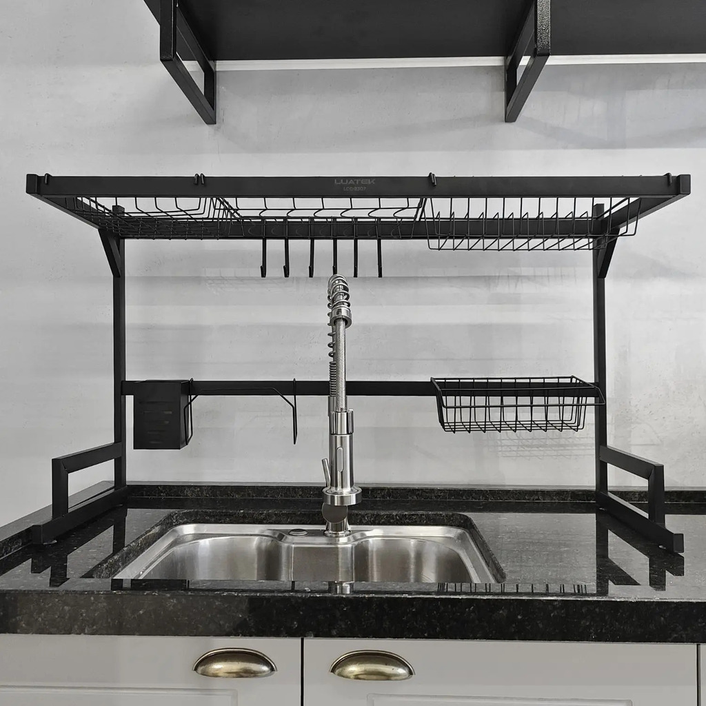 Seu formato sobre a pia permite armazenar mais louças sem ocupar espaço extra. Ideal para cozinhas pequenas ou para quem busca mais organização, o Kitchen Rack transforma até as bancadas mais apertadas em um ambiente funcional, bonito e fácil de manter limpo.