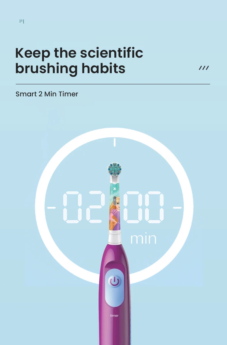 Oral-B Escova de Dentes Elétrica Infantil – Rotativa, Cerdas Macias, Temporizador 2 Minutos, À Prova d’Água
