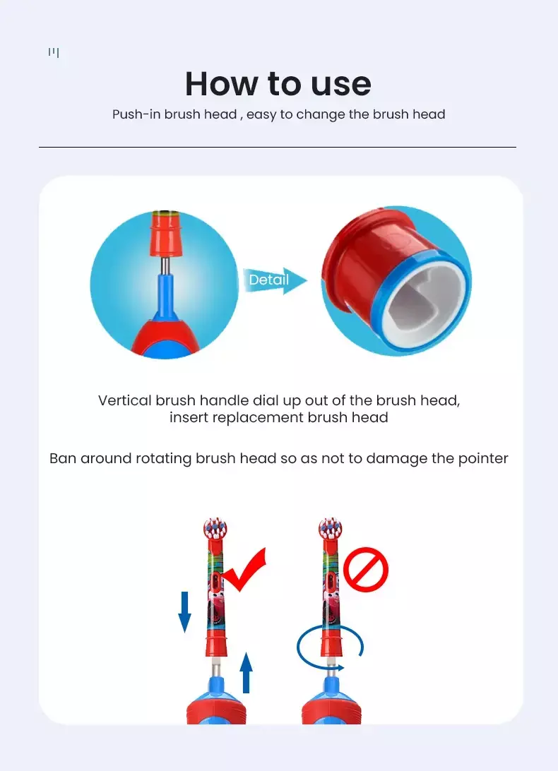 Com cabeça substituível, você não precisa trocar o aparelho — basta substituir o refil. Isso faz da escova um investimento inteligente, prático e sustentável para o cuidado dental do seu filho.