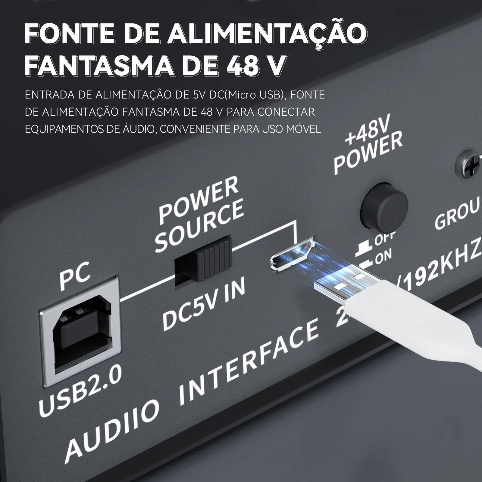 Alimentação phantom power 48V para usar microfones condensadores sem ruído